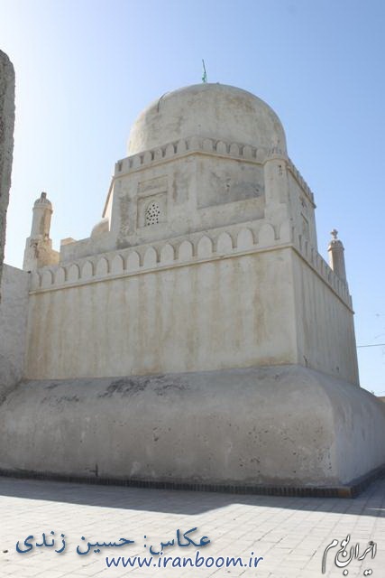 روبروی آرامگاه صفحهای به بلندی یک متر و چهار پله قرار دارد که بر روی آن آرامگاه واقع شدهاست. در قسمت شرقی صفحه آرامگاه (آرامگاه) یک پیشخوان با سقف تیرهای چوبی و حصیری و چند ستون چوبی است. که با پنج پله به حیاط متصل میشود.